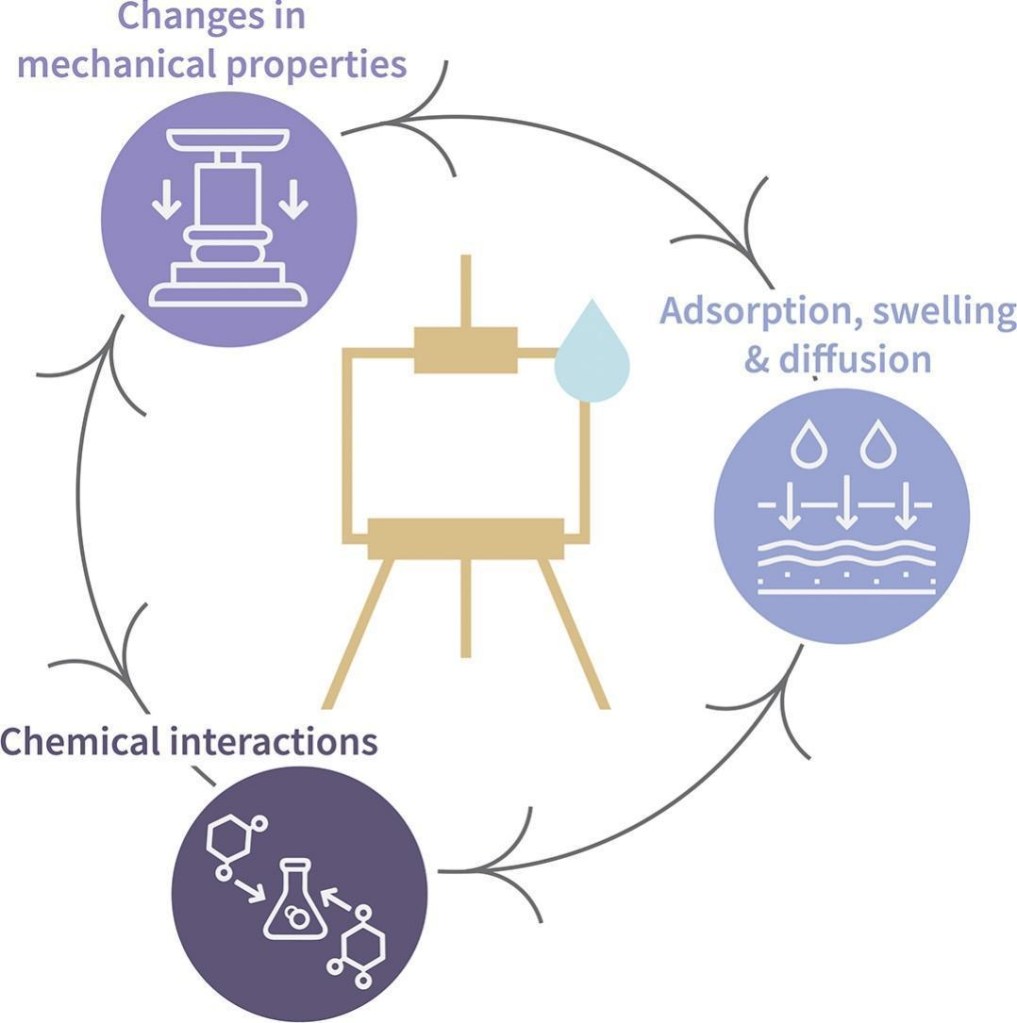 I contributed to a review on the influence of water and humidity on oil paint layers. This article was written in the framework of Léa Cutard‘s PhD, directed by Laurence de Viguerie at LAMS. The publication is open access and available for download here.