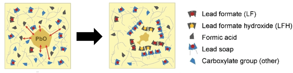 In this context, I am today particularly interested in the reactivity of lead oxides pigments in organic oil matrices: I study the chemical reactions at play at the level of individual pigment particles within an organic linseed oil matrix, in order to shed light on the transport mechanisms explaining the distribution at the micro-scale of newly formed compounds in paint layers.
