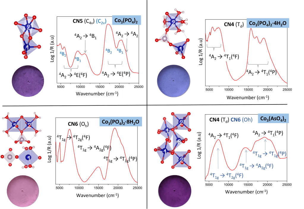 The colour of Co/As-P compounds is directly linked with the wide variety of local environments that the cobalt atom can adopt. After a synthesis of pure compounds in the laboratory, we studied their crystal structures by high-angle-resolution X-ray diffraction using synchrotron radiation, and probed the electronic transitions responsible for their optical properties via UV-vis-NIR spectroscopy. Equipped with this fundamental knowledge, it was possible to analyse micro-samples collected on paintings by Delaunay. Rietveld analysis of the collected structural data made it possible to accurately measure the distribution of metal atoms according to their sites in the structures and precisely establish the optical properties of the different Co-based pigments used by the artist [1].