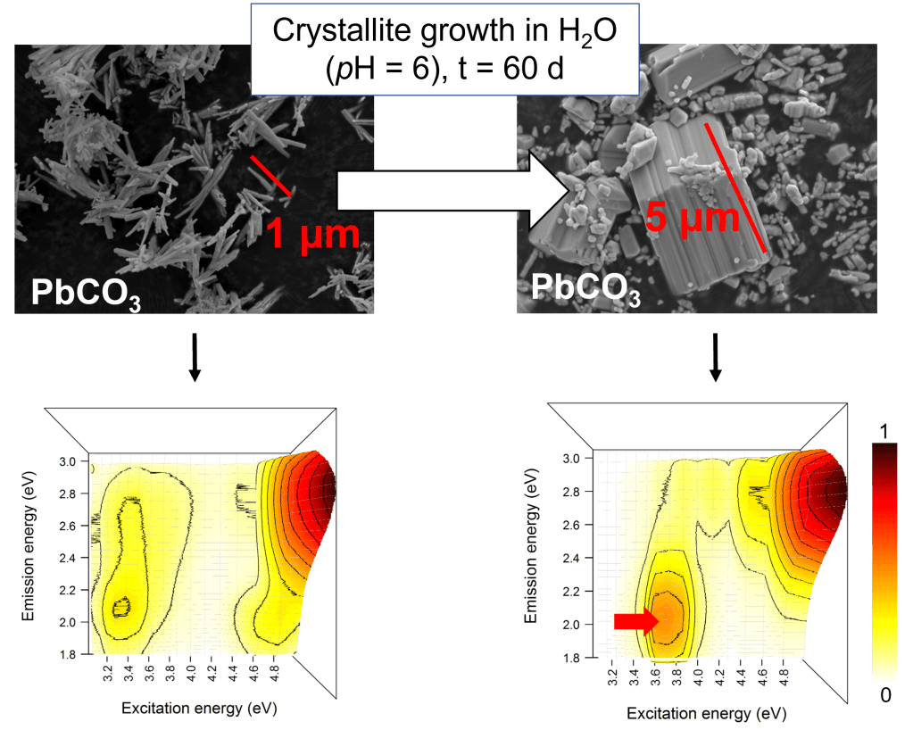Finally, we evaluated the potential of PL properties to provide markers for the synthesis of ancient pigments. Two polymorphs of a pigment that are indistinguishable by structural analysis, obtained by different synthesis methods, differ in the presence of structural defects or impurities, which result in variations in the PL signal. In the case of lead carbonates, we have shown that PL emissions excited below 4.5 eV were attributed to the charge transfer transitions, disturbed by defects present in the cerussite and hydrocerussite matrices. We then shown that the application of post-synthesis treatments affected PL emissions excited in the near UV, proving that PL spectroscopy can be considered an innovative probe for studying the origin and evolution of ancient pictorial materials [5].